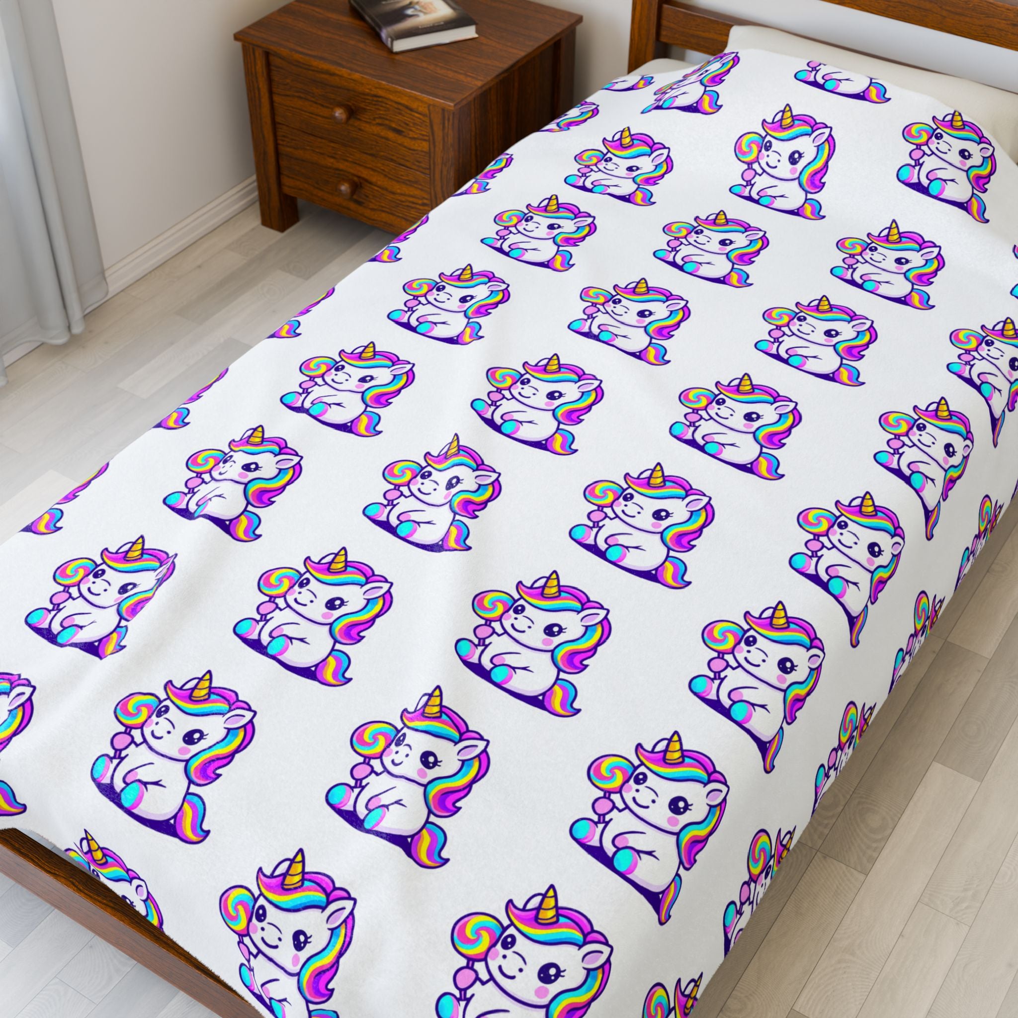 Magical Unicorn Velveteen Plush Blanket, Kids Blanket, Cozy Throw, Ideal Gift, Cute Decor, Soft Home Accessory